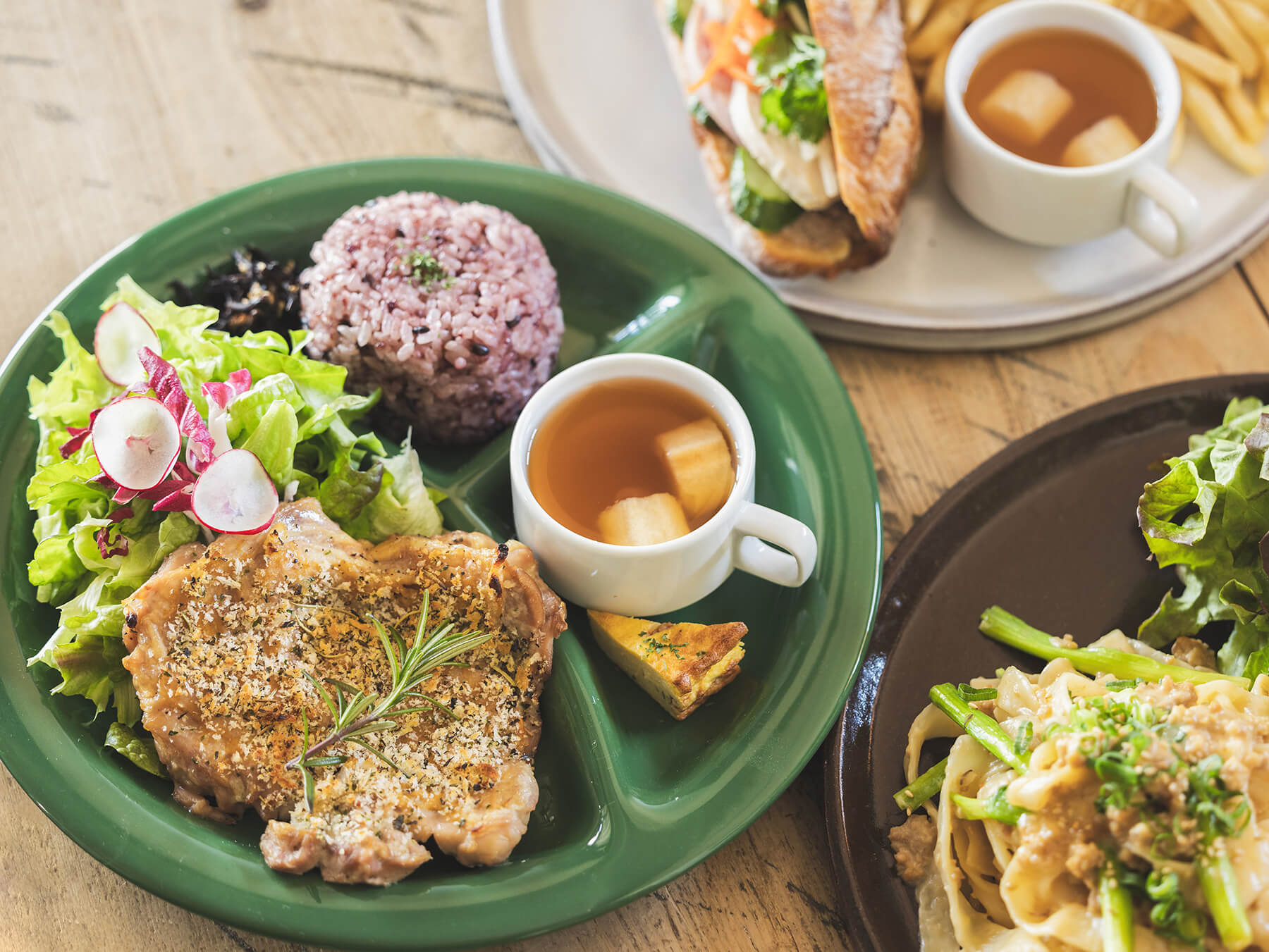 お店の裏には自家製野菜や果物を栽培している『marimo garden』があります。低農薬で栽培された採れたての野菜や、果物をふんだんに使用したジャムやソース、また山梨県産のこだわり食材を使用し、marimoの美味しいカフェご飯は作られています。